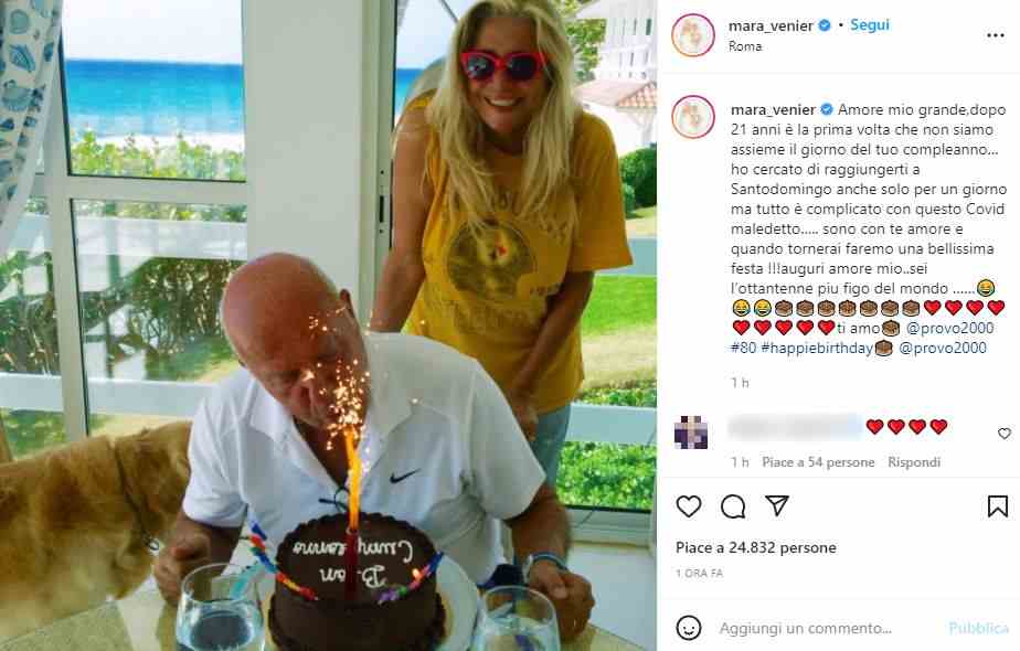 Con il post, la Venier, ha voluto mostrare una sorta di vicinanza al marito e ha promesso di fare una grande festa al suo ritorno. La tristezza aumenta per il fatto che oggi sono 80 anni per Nicola Carraro. Un traguardo certamente importante e che avrebbe voluto condividere con sua moglie.