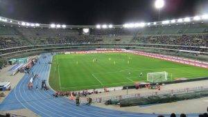 Squadre in campo al Bentegodi agli ordini dell’arbitro Pasqua.