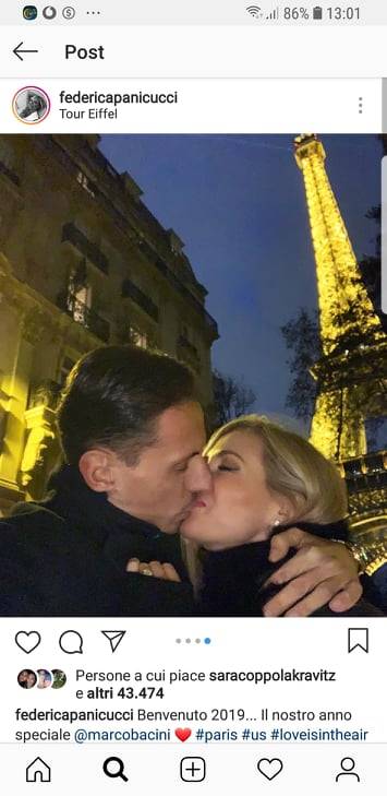 Federica Panicucci e Marco Bacini presto sposi. La conduttrice di “Mattino 5” lo fa intendere attraverso un misterioso post sul proprio profilo Instagram. La Panicucci, una volta messo fine al suo lungo matrimonio col deejay Fargetta, si è fidanzata con l’imprenditore Marco Bacini. Lui è un amico di vecchia data e ora socio in affari con cui è partita per una romantica vacanza alla volta di Parigi. La nota conduttrice con il suo ex marito è stata legata per nove anni, fino al 2015. La conduttrice ha raccontato qualche tempo fa i suoi sentimenti: “L’amore per Marco mi ha letteralmente travolta, e io mi sono fatta travolgere.Sono molto felice. È un momento importantissimo: sto vivendo una storia che mi appaga da tutti i punti di vista”.