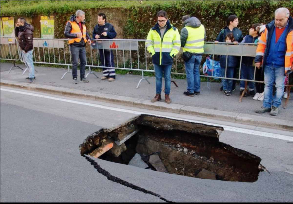 All’altezza o quasi del parco della Montagnola, un pezzo di strada, crollando, ha causato una sorta di cratere di due metri per due metri.