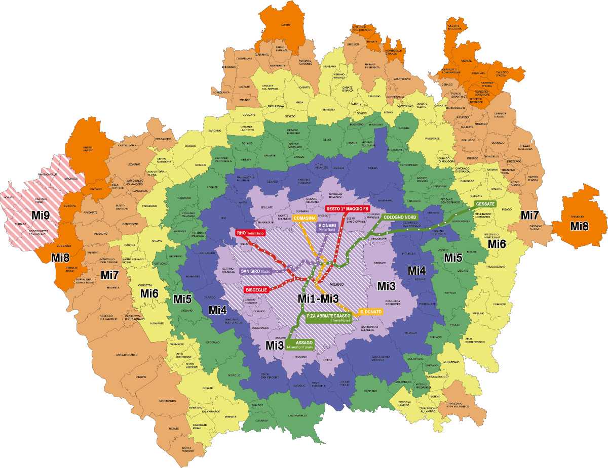 L’are geografica coperta dall’ATM Milano è stata suddivisa in 9 fasce tariffarie concentriche. Quella urbana del biglietto da 2 euro copre le zone 1, 2 e 3. L’attraversamento di ogni zona aggiuntiva comporta un aumento del biglietto di 40 centesimi per ogni fascia. I passeggeri in possesso dei vecchi biglietti potranno comunque utilizzarli per il prossimi 90 giorni, fino al 12 ottobre.