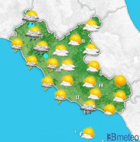 Al mattino poco o parzialmente nuvoloso, con possibili temporali isolati, al pomeriggio nubi sparse e schiarite, la sera sereno o poco nuvoloso, la notte sereno o poco nuvoloso.