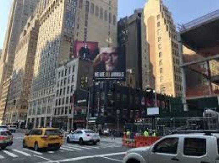 Phoenix, che è vegano dall’età di 3 anni, ha riassunto il messaggio della campagna nel guardare il mondo con gli occhi degli animali per capirne la sofferenza. Il cartellone è attualmente in mostra a Times Square all’incrocio tra Seventh Avenue e W. 40th Street.
