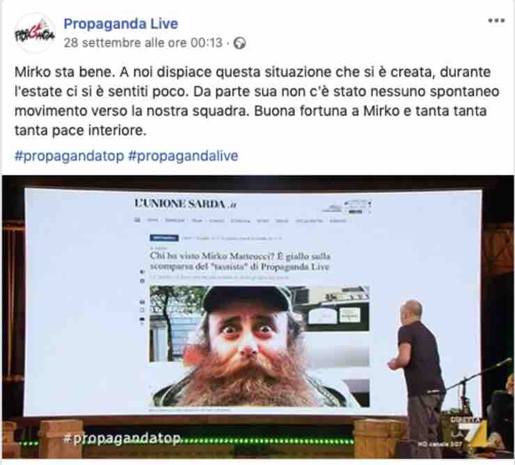 Aveva fatto preoccupare tutti gli appassionati di Propaganda Live, Missouri 4, il tassista Mirko Matteucci, reso famoso dal programma condotto su LA 7 da Diego “Zoro” Bianchi: oggi riappare in un video su Twitter e tranquillizza il pubblico.
