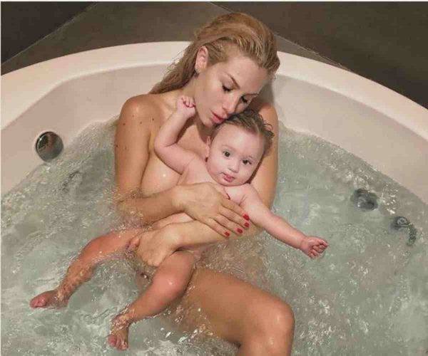 Paola Caruso ha deciso di condividere con i suoi fans, la foto senza veli mentre fa il bagnetto col figlio Michelino.