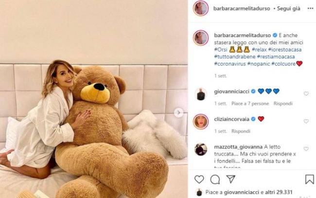 Arrivati in camera da letto ciò che stupisce è la presenza di due grandi amici che le fanno compagnia ogni sera ma che non sono i soli visto che la stanza ne è piena, come si legge nel post pubblicato su Instagram: