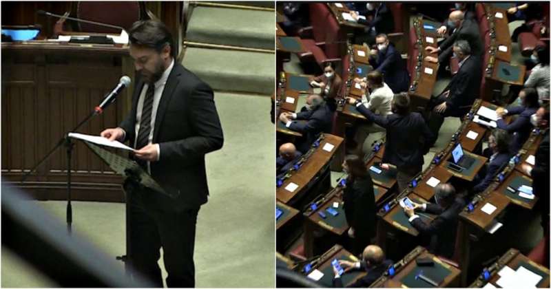 Le parole del deputato 5 stelle hanno scatenato l’ira del palco leghista, tanto che il presidente della Camera, Roberto Fico, ad un certo punto è stato costretto a chiudere la seduta.