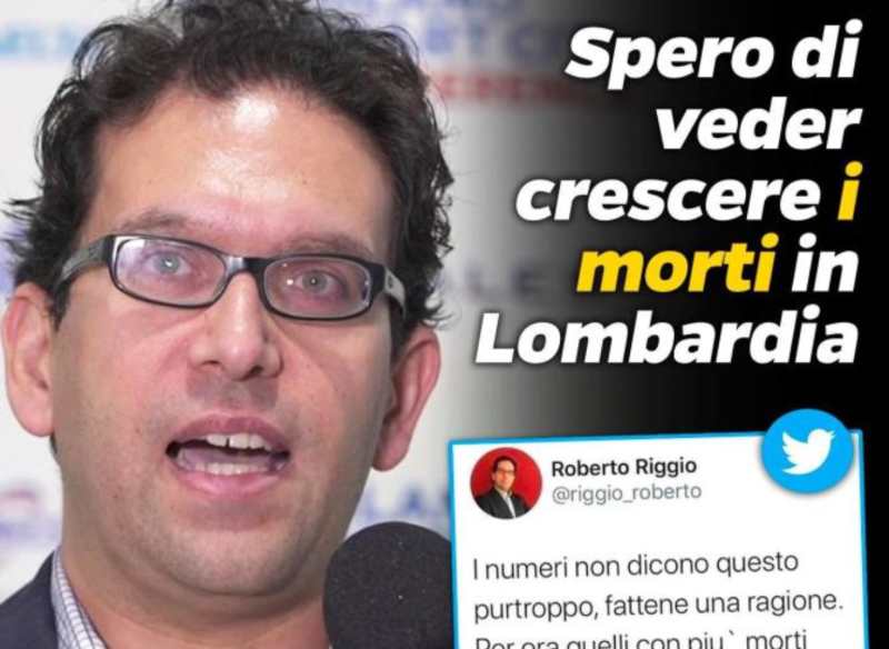 Dopo l’attacco in Aula del grillino Riccardo Ricciardi non sono mancati altri missili all’indirizzo della regione Lombardia. Ma quello sulla pagina personale Twitter di Roberto Riggio, supera ogni decenza.