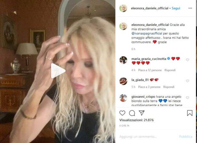 “Grazie alla mia straordinaria amica @ivanaspagnaofficial per questo omaggio affettuoso . Ivana mi hai fatto commuovere .❤️ grazie”