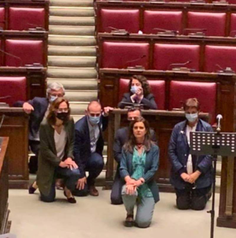 Il riferimento era a quanto si è visto nel pomeriggio alla Camera, dove Laura Boldrini e il gruppo Pd si sono inginocchiati per commemorare George Floyd.