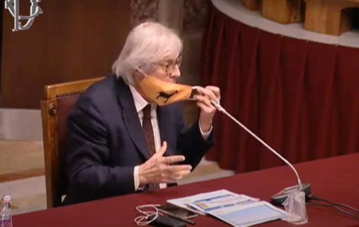 Vittorio Sgarbi ne fa una delle sue. Drante una seduta della Commissione alla Camera, si toglie la mascherina e spiega i suoi perchè.