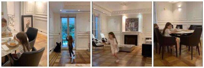 Il bianco ed il beige prevalgono all’interno della zona relax, dove una delle figlie di Wanda, dopo aver dato vita ad una corsa felice, si rilassa poi scrivendo qualcosa o facendo i compiti. La villa sembra molto elegante, grande, ma non necessariamente sfarzosa.