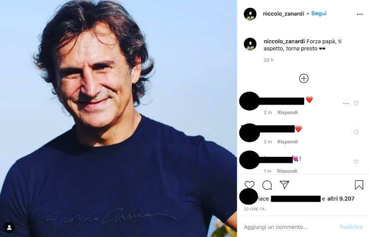 Niccolò Zanardi, figlio del noto pilota Alex, ha lasciato un tenerissimo e commovente post su Instagram per augurare al suo adorato papà di ridonare presto a casa.