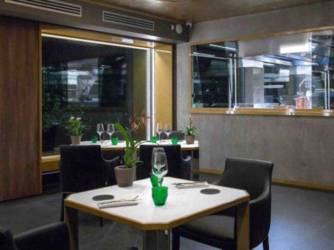 Passiamo alla parte tecnica, sempre da come si legge sul sito del ristorante: il reparto di Banqueting e Catering, il laboratorio per pasta fresca e gli uffici di Food Consulting e Progettazione sono tutti vicini. Il portone d’ingresso, che è caratterizzato dal ferro illuminato accompagna il filo dorato che segna il percorso dell’intera location lungo i pavimenti e rivestimenti di Neolith, gli arredi e le sedute UHS rendono infine l’ambiente comodo e confortevole.