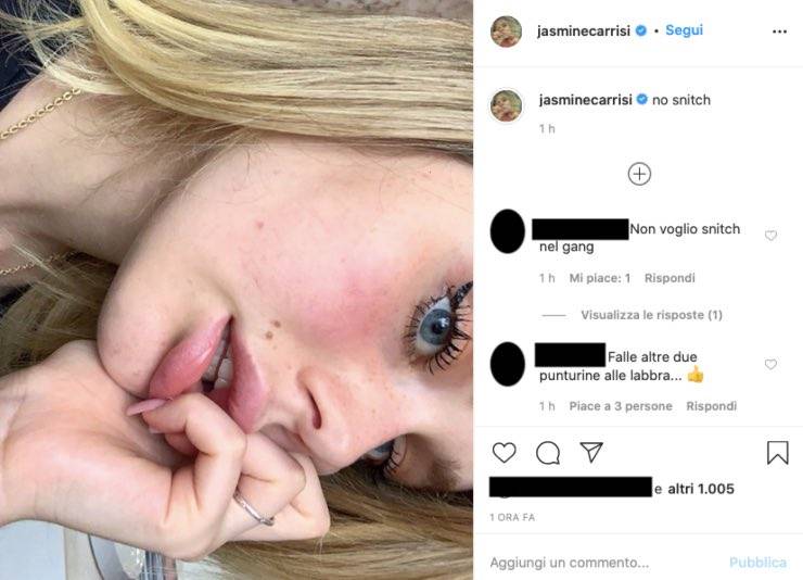 Jasmine Carrisi Instagram: ritorna l’accusa relativa alle sue labbra