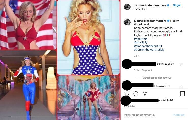 La fotografia pubblicata è accompagnata da una didascalia scritta dalla stessa Mattera che recita: “Happy 4th of July! Sono sempre stata patriottica. Da italoamericana festeggio sia il 4 di luglio che il 2 giugno”.