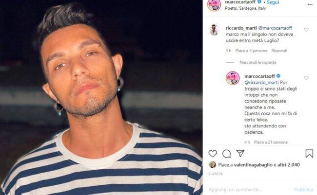 Il fan, commentando una foto caricata da Carta su Instagram, ha chiesto: “Marco ma il singolo non doveva uscire entro metà luglio?”.