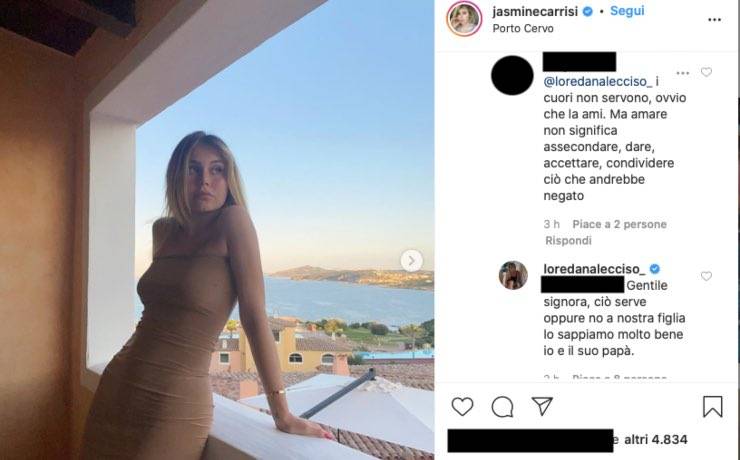 Loredana Lecciso Instagram: tra i commenti sul profilo di Jasmine Carrisi spuntano i cuori, poi la bacchettata