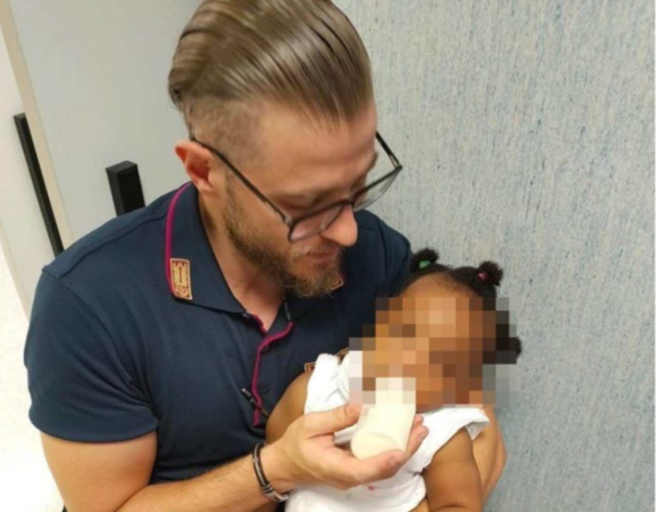 La madre sta male, il poliziotto si prende cura della figlia neonata