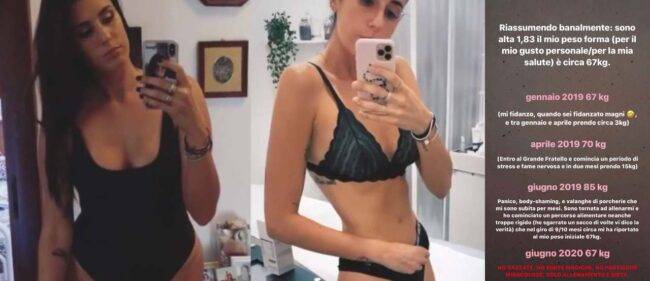 “Andando oltre qualsiasi tipo di discorso estetico“ ha detto Valentina “Parliamo di salute. Se a qualcuno sembro un po’ troppo magra, sappiate che rispecchio la percentuale di grasso giusta” che ha poi voluto raccontare il suo percorso con il peso.