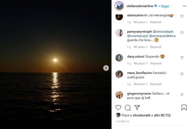 Mentre il messaggio di Stefano De Martino è molto più conciso e breve: “Aspettando la luna”.