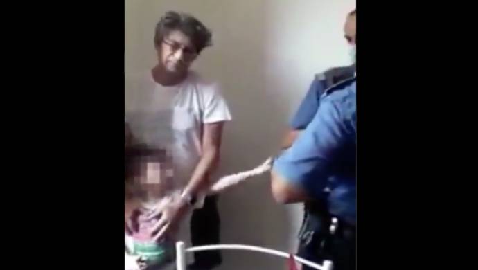 Il bambino piange e non vuole lasciare lo zio ma lo portano via e l’uomo va poi in escandescenze. Le immagini che spezzano il cuore.