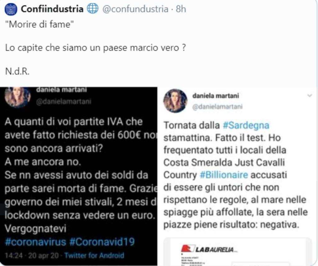 Sul noto social, infatti, è stato postato da numerosi utenti un vecchio Tweet della Martani, risalente al 20 aprile 2020. All’epoca la nota opinionista lamentava di non aver ancora ricevuto il bonus di 600€ previsto per le Partite Iva: “Se non avessi avuto dei soldi da parte sarei morta di fame.”