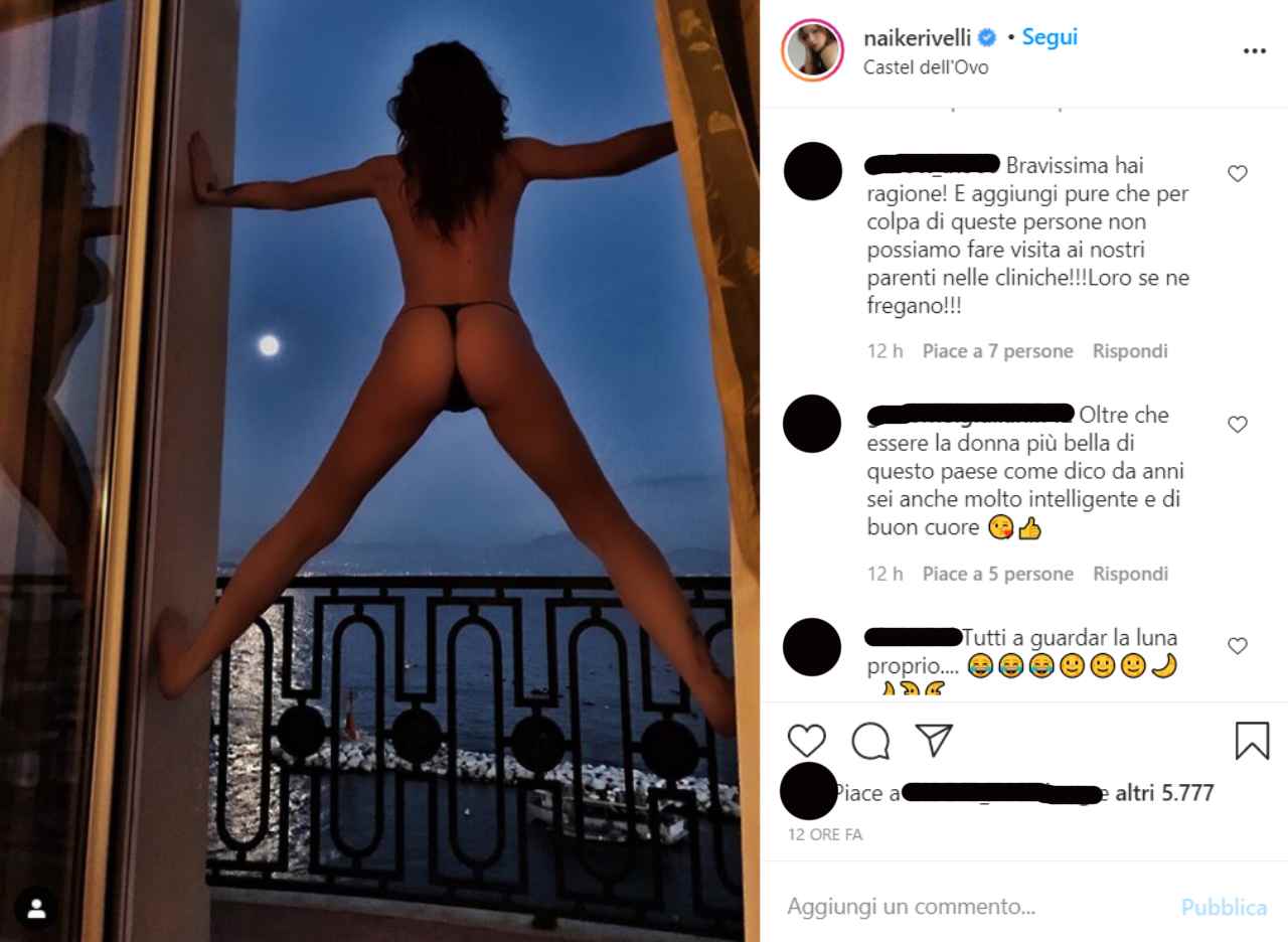#1 Naike Rivelli, la figlia di Ornella Muti si guadagna il primo posto della classifica con il suo scatto sospesa in perizoma sul balcone: audace, artistico e decisamente hot.