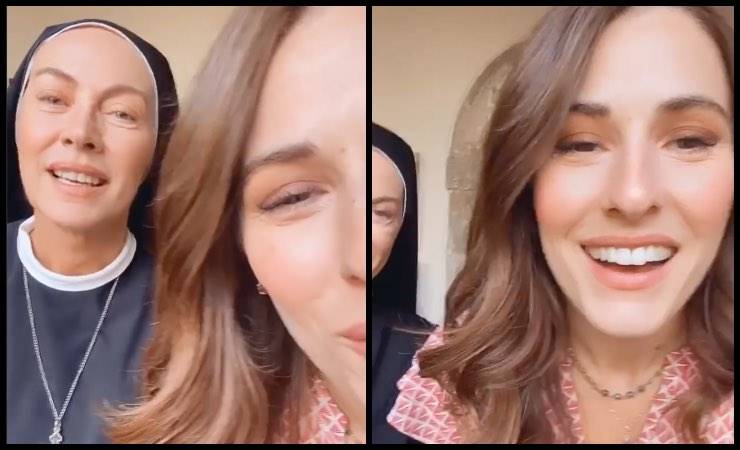 Le attrici, infatti, si sono mostrate in un breve video in cui Elena Sofia Ricci è nelle vesti di Suor Angela e prende in giro la Del Bufalo dicendo: “Si devo andare a girare, perché non ti fai diagnosticare quella cosa che…” – poi interviene Diana che dice ridendo – “la malattia che ho la coprolalia, dire cose inadeguate in momenti inadeguati“.