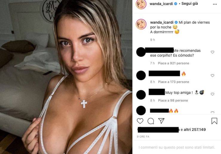 Wanda Nara Instagram, sensualità che stende il pubblico: “Il mio programma del venerdì sera. Dormire”