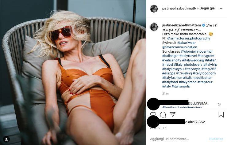 La splendida Justine Mattera si mostra in costume, distesa e con pose da diva su Instagram: la temperatura si alza mentre lei “rende i giorni memorabili”