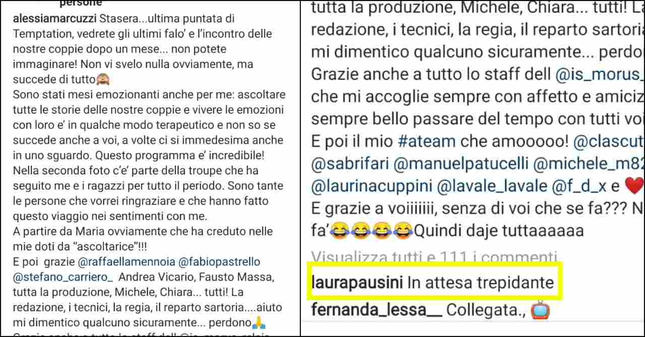 A far svelare il ‘segreto’ di Laura Pausini ci ha pensato Alessia Marcuzzi, la nota conduttrice ha infatti scritto un post su Instagram sotto al quale è arrivato pronto un commento della nota cantante molto attiva sui social. La Marcuzzi ha voluto postare un commovente ringraziamento generale ai suoi compagni di avventura e ai telespettatori di Temptation Island.