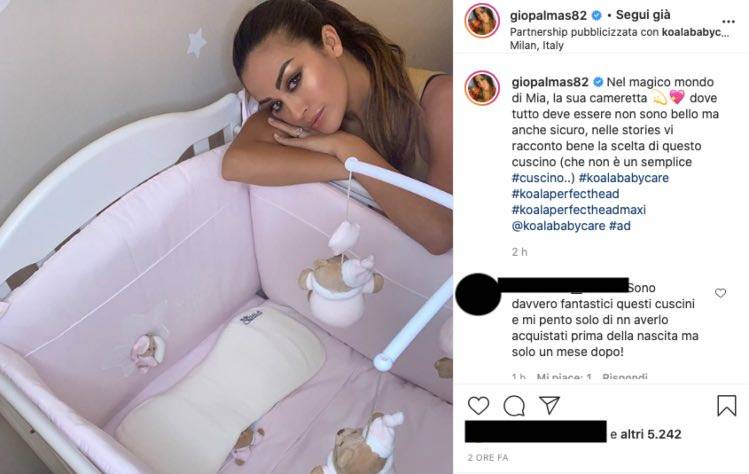Nel testo della didascalia che accompagna il post, infatti, si legge: “Nel magico mondo di Mia, la sua cameretta, dove tutto deve essere non sono bello ma anche sicuro, nelle stories vi racconto bene la scelta di questo cuscino (che non è un semplice #cuscino..).