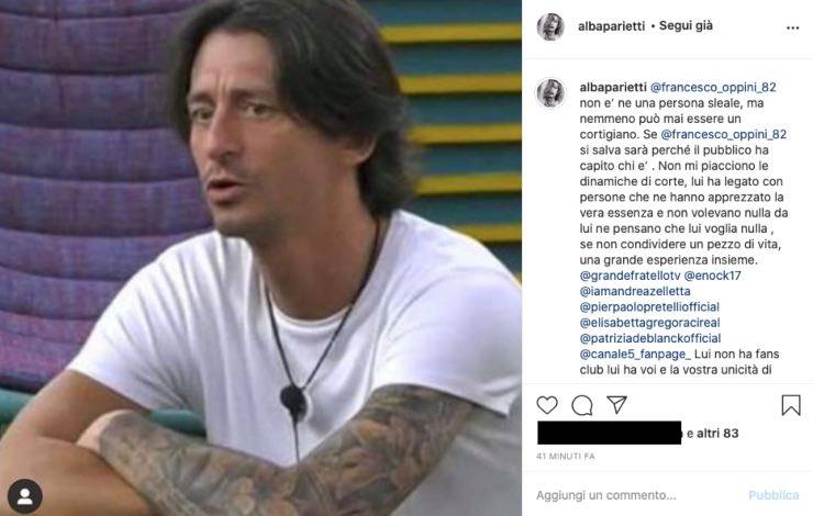 Continua a seguire l’evoluzione della vita e dei rapporti tra i coinquilini al GF Vip, Alba Parietti, che attraverso Instagram lancia un messaggio in difesa e a favore di suo figlio Francesco Oppini, come noto tra i coinquilini della casa: “se si salva…”