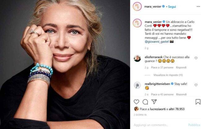 Ecco cosa ha scritto sulla sua pagina: “Un abbraccio a Carlo Conti….stamattina ho fatto il tampone e sono negativa!!!! Tanti di voi mi hanno mandato messaggi ….per ora tutto bene”.