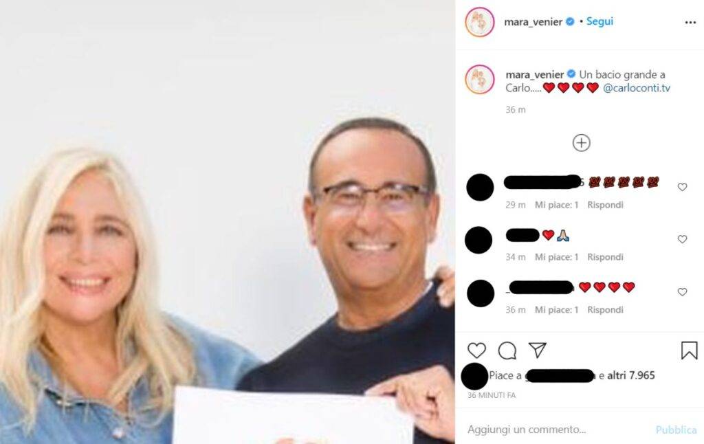 Mara Venier pensa a Carlo Conti, la dedica su Instagram: “Un bacio grande”