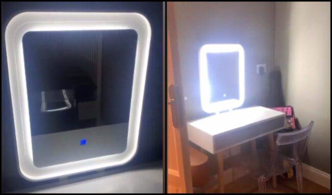 Lo specchio per i trucchi di Sofia, possiamo affermarlo, non è come tutti gli altri. Nulla di particolare, ma l’idea è davvero simpatica. La cornice stessa, si illumina dando la possibilità a chi ci si specchia, di notare i particolari anche quando in camera non c’è molta luminosità. Accanto, una semplice sediolina trasparente e sotto, un mobiletto che si immagina contenga trucchi, appunto, che potrebbe fare anche da scrivania per i compiti.