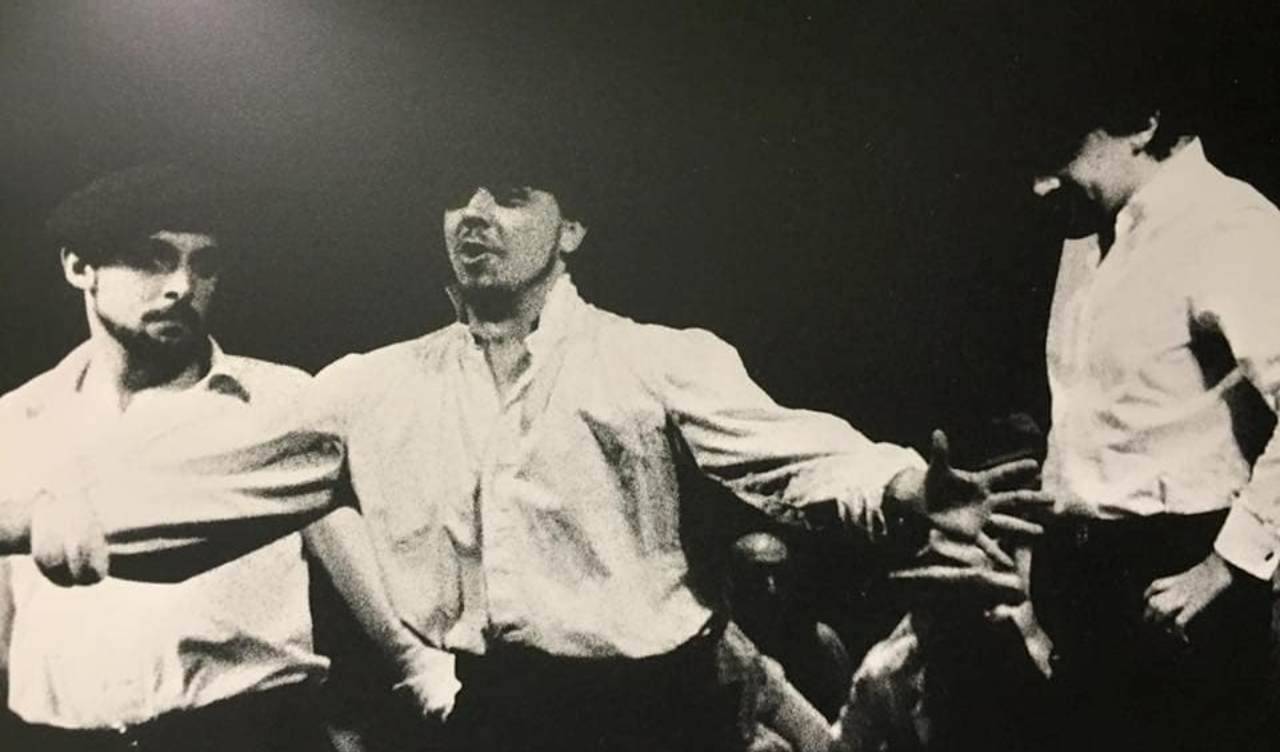 La foto è in bianco e nero e ritrae i tre sul palcoscenico, belli e giovanissimi sono immortalati nel momento della canzone “Siamo rimasti in tre” da “Rinaldo in campo.” I tre hanno iniziato proprio insieme e ancora oggi sono grandi amici. Loro vengono dalla scuola di Gigi Proietti e l’impronta del maestro c’è e si vede.