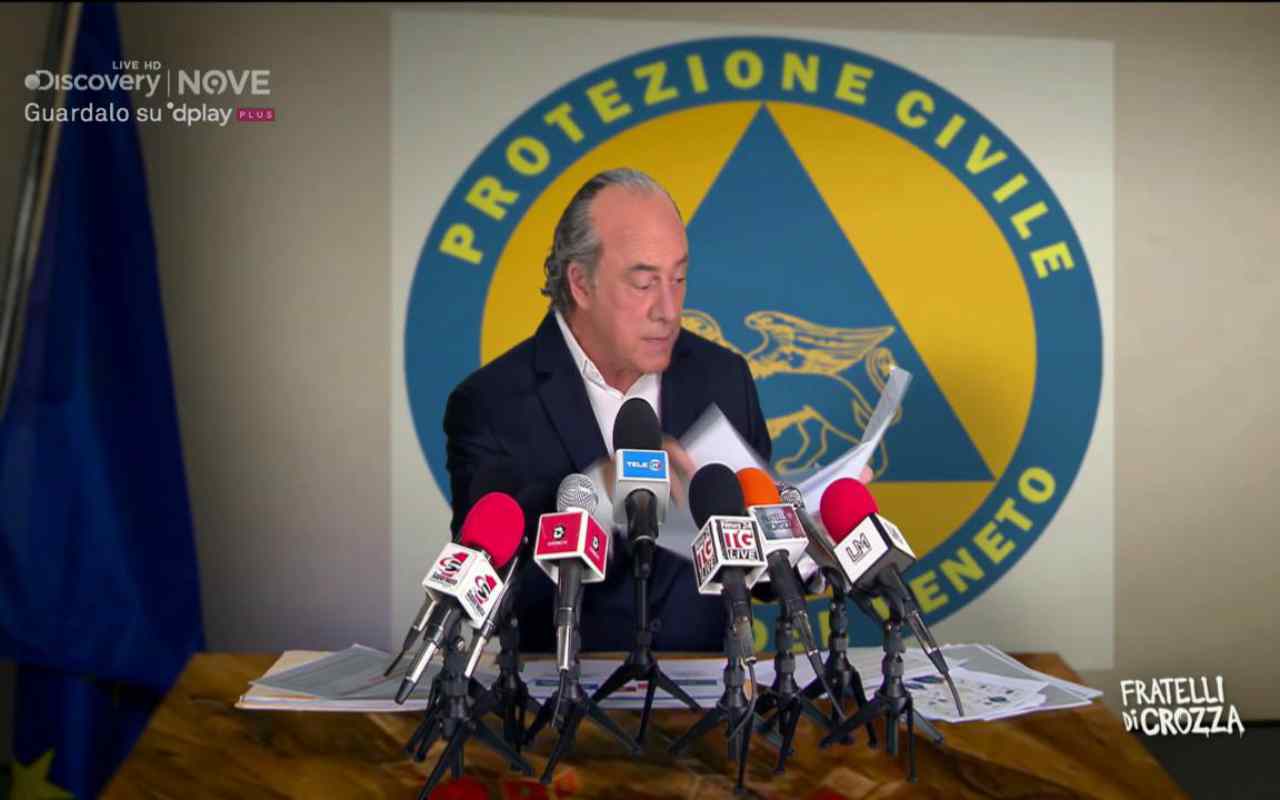 Maurizio Crozza – nella puntata di “Fratelli di Crozza” in onda sul Nove ieri, venerdì 20 novembre, è tornato a vestire i panni del governatore Luca Zaia mentre in diretta Facebook mostra come fare il tampone rapido fai da te : “Vi voglio mostrar una roba che g’avemo solo noi nell’emisfero autonomo del Veneto e cioè il test diagnostico per il Covid fai da te. So già che poi gli altri ci copiano le idee come è successo a Steve Jobs che era di queste parti e ha inventato l’I-Mona.”