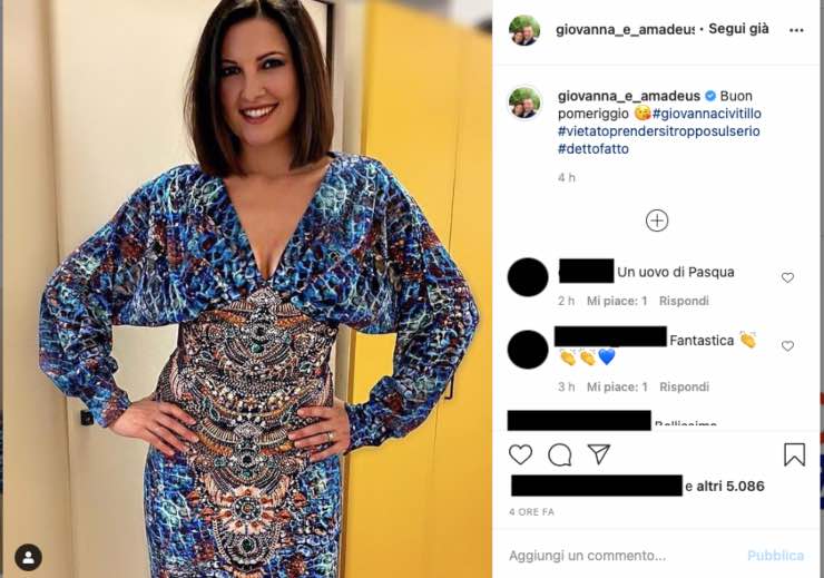 Amadeus Instagram, la moglie Giovanna Civitillo incanta i social: pioggia di like e commenti per lei
