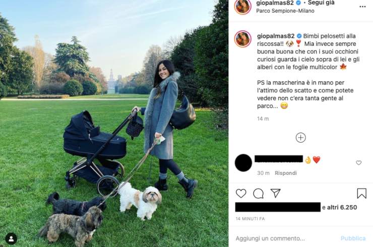 E ancora: “PS la mascherina è in mano per l’attimo dello scatto e come potete vedere non c’era tanta gente al parco…”.