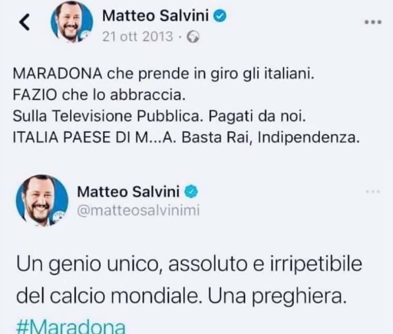Morte Maradona, la doppia faccia di Salvini: Ieri nemico, oggi ero