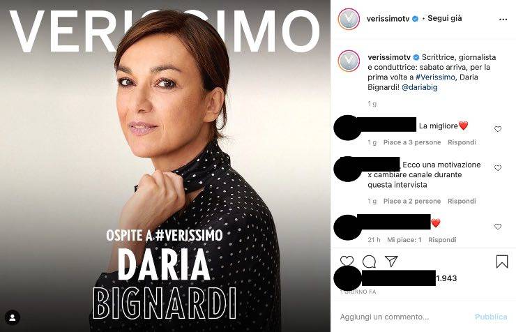Daria Bignardi sarà dunque tra gli ospiti di ‘Verissimo‘, programma condotto su Canale 5 da Silvia Toffanin in onda ogni sabato alle ore 16:00.