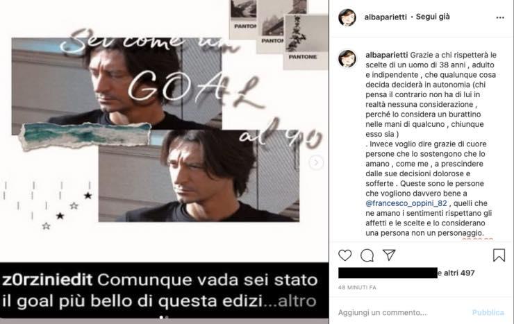 In basso, riportato il post completo di Alba affidato ad Instagram.
