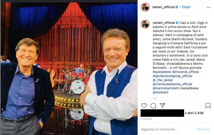 LEGGI ANCHE >>> Gianni Morandi e Massimo Ranieri, scatto inedito: “Stasera insieme”