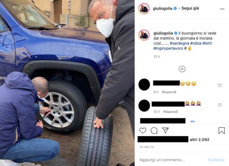 Per la precisione, Golia al momento della foto sembra si trovasse in Sardegna, poiché tra gli hashtag compaiono anche “Olbia” e “Bitti”.