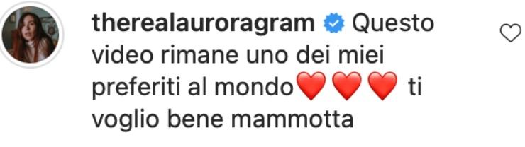 Tra i tantissimi commenti ricevuti, vi è anche quello di Aurora Ramazzotti che teneramente scrive: “Questo video rimane uno dei miei preferiti al mondo ti voglio bene mammotta“.