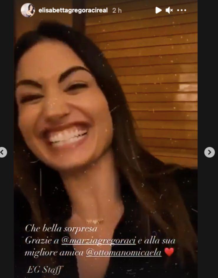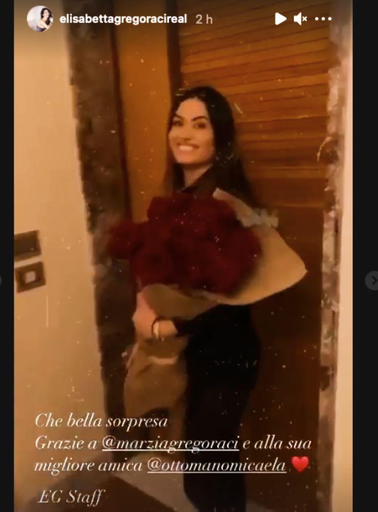Su Instagram infatti, tra le stories, il volto noto del mondo dello spettacolo si mostra intenta ad aprire la porta mentre tiene tra le mani un mazzo di fiori. Tra i ringraziamenti, c’è proprio Marzia.