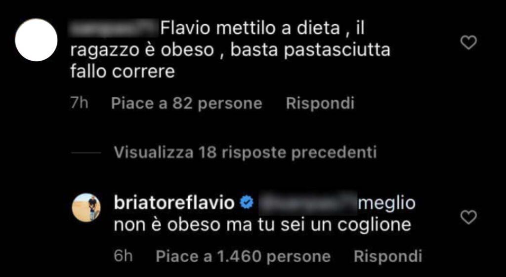 Peccato che questo dolce scatto sia stato macchiato dal commento sgradito e puramente vile di un hater che ha scritto: “Flavio mettilo a dieta, il ragazzo è obeso, basta pastasciutta fallo correre”.
