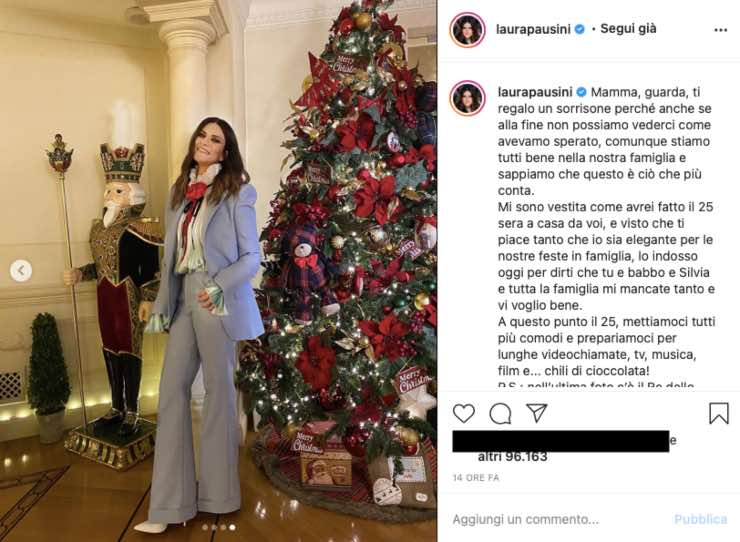 Questa, la prima frase del suddetto post in cui Laura si mostra bella e raggiante come sempre, con alle spalle un meraviglioso albero di Natale.